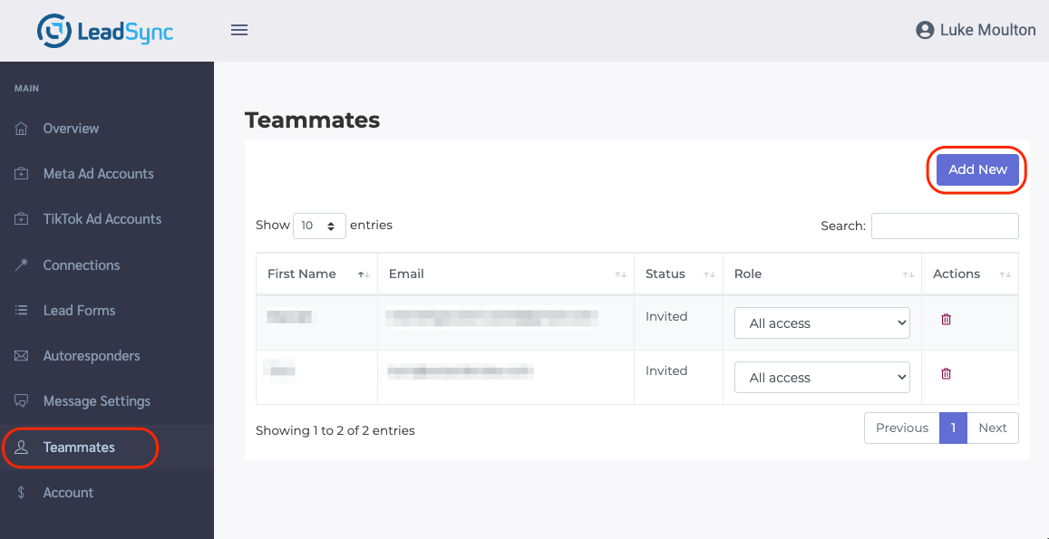 If you have a Marketer or Agency (Unlimited) account, you now have the option to invite teammates to your LeadSync account so that they can work with your connections and lists.