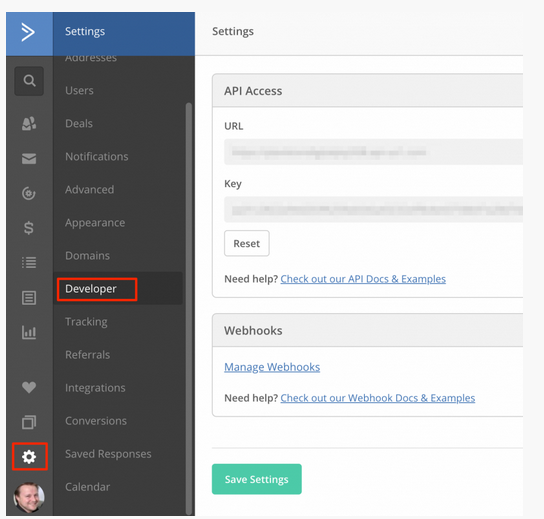 - Next, you need to login to your ActiveCampaign account and find your developer URL and API key. Login and click on Billing & Upgrade (1.), then Developer (2.).