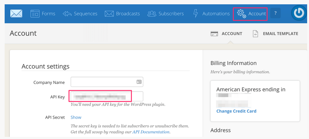 - Now login to your Kit account, click on the Account tab and copy the API Key.
