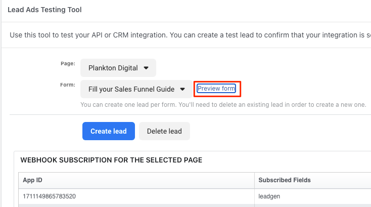 Testing Your Lead Form Connection with Facebook's Tool¶